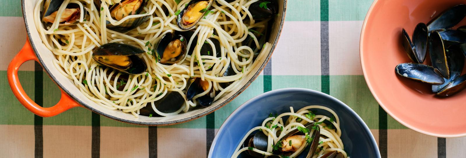 Spaghetti med blåmuslinger